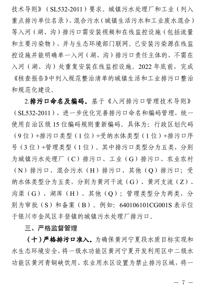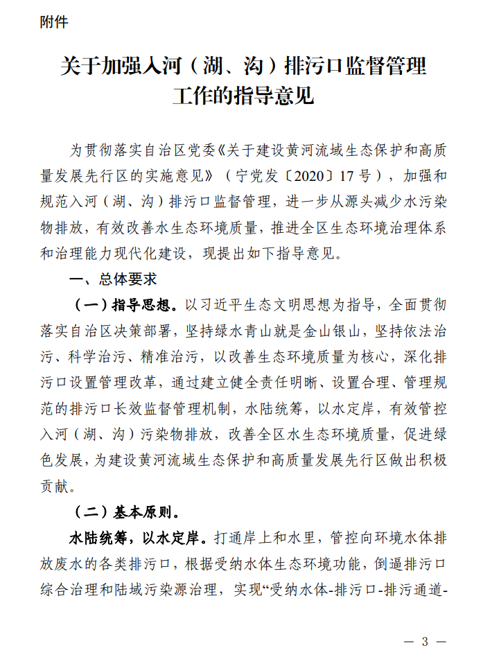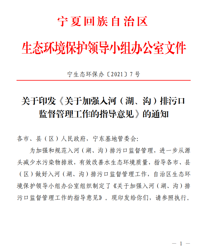 《寧夏印發(fā)關(guān)于加強(qiáng)入河(湖、溝)排污口監(jiān)督管理工作的指導(dǎo)意見(jiàn)》(寧生態(tài)環(huán)保辦【2021】7號(hào))
