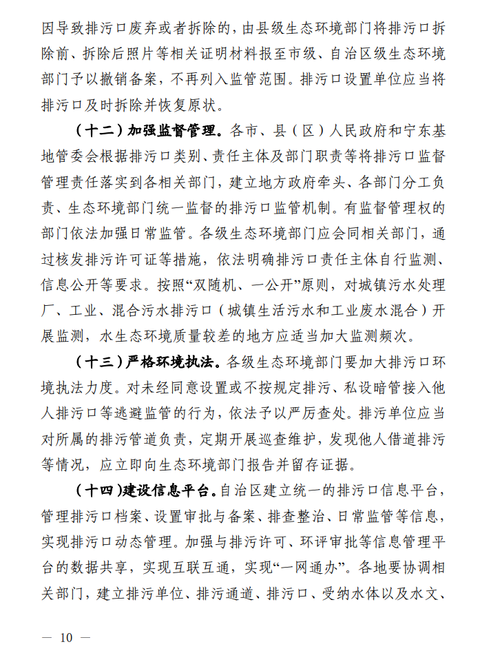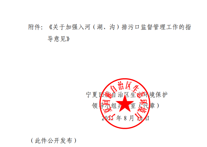 近日,寧夏回族自治區(qū)發(fā)布了關(guān)于印發(fā)《關(guān)于加強(qiáng)入河(湖、溝)排污口監(jiān)督管理工作的指導(dǎo)意見(jiàn)》的通知,進(jìn)一步從源頭減少水污染物排放,有效改善水生態(tài)環(huán)境質(zhì)量,指導(dǎo)各市、縣(區(qū))做好入河(湖、溝)排污口監(jiān)督管理工作,全文如下: