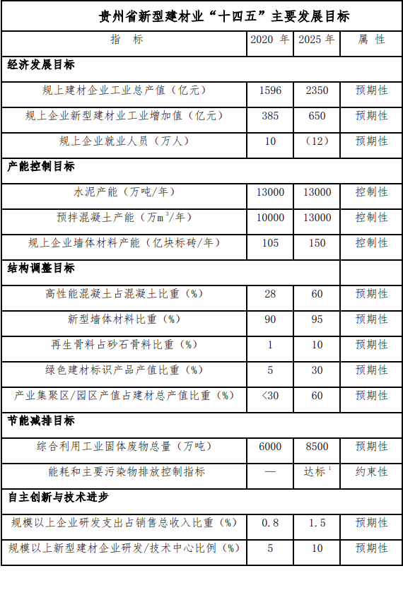 (三)發(fā)展目標(biāo)《貴州省“十四五”新型建材產(chǎn)業(yè)發(fā)展規(guī)劃(征求意見稿)》(貴州省工業(yè)和信息化廳 2021年8月)