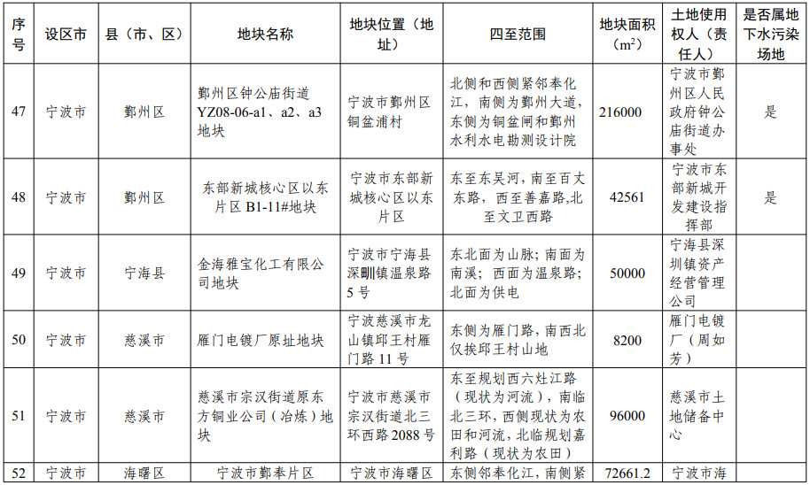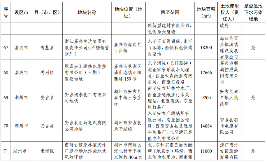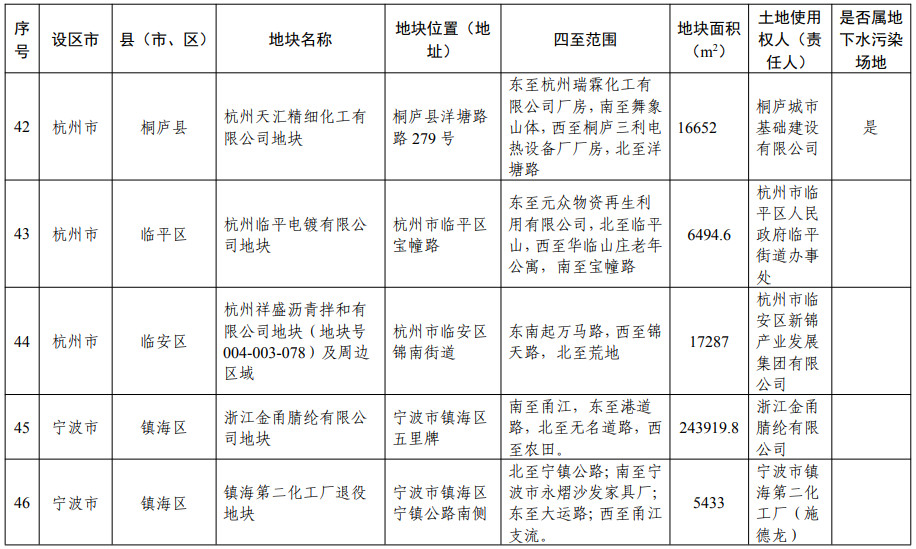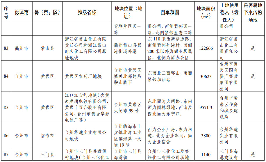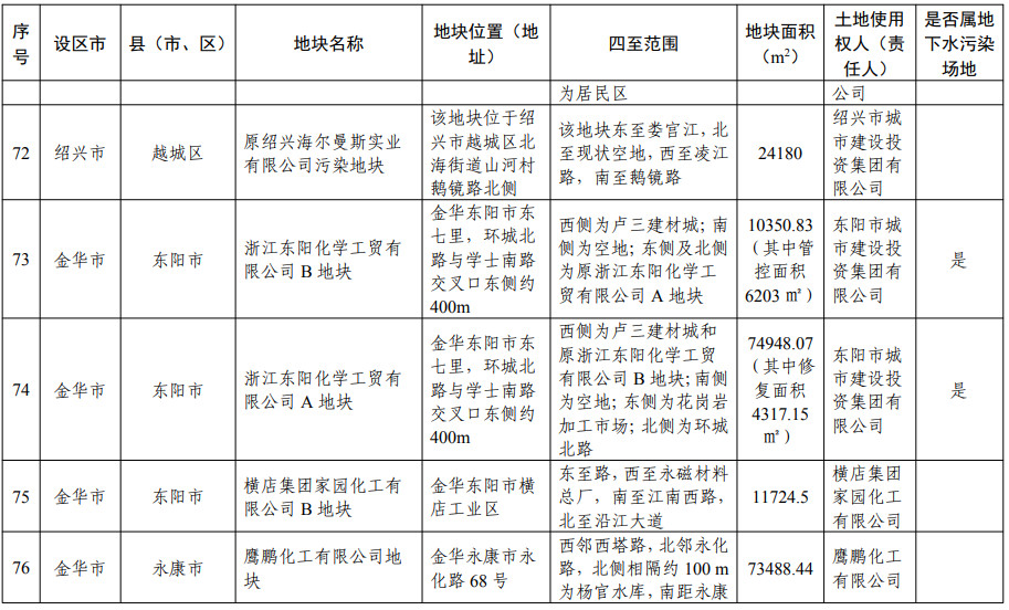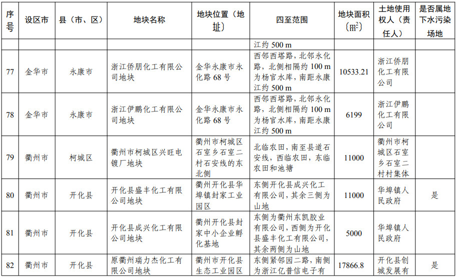 《浙江省建設(shè)用地土壤污染風(fēng)險(xiǎn)管控和修復(fù)名錄(含地下水污染場(chǎng)地)》(2021年8月9日更新)