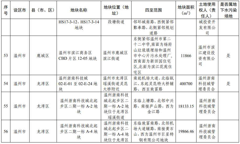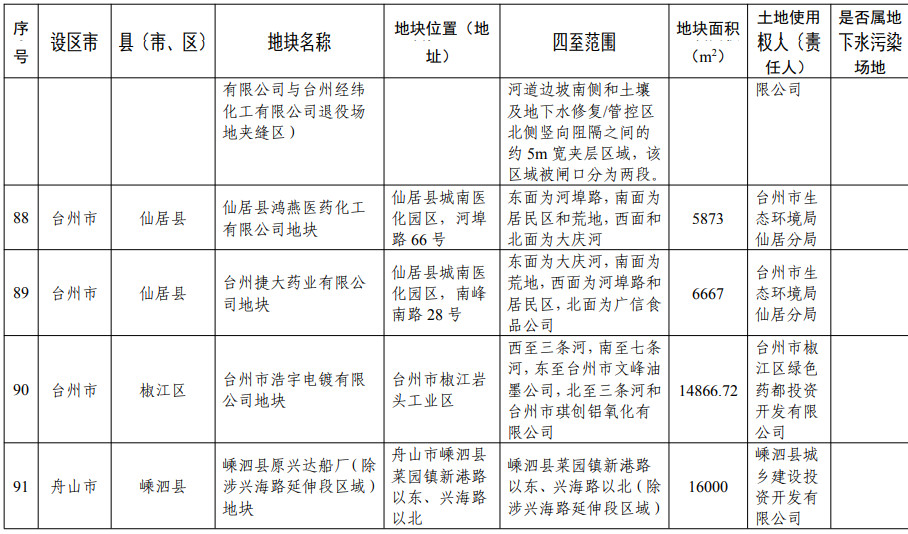 獲悉,8月9日,浙江省發(fā)布了《浙江省建設(shè)用地土壤污染風(fēng)險(xiǎn)管控和修復(fù)名錄(含地下水污染場(chǎng)地)》共91地塊,詳情如下: