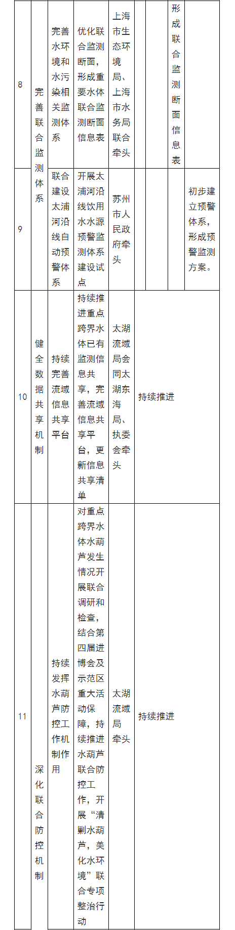 六、深化聯(lián)合防控機(jī)制《上海市關(guān)于印發(fā)<長(zhǎng)三角生態(tài)綠色一體化發(fā)展示范區(qū)重點(diǎn)跨界水體聯(lián)保2021年重點(diǎn)工作計(jì)劃>的函》