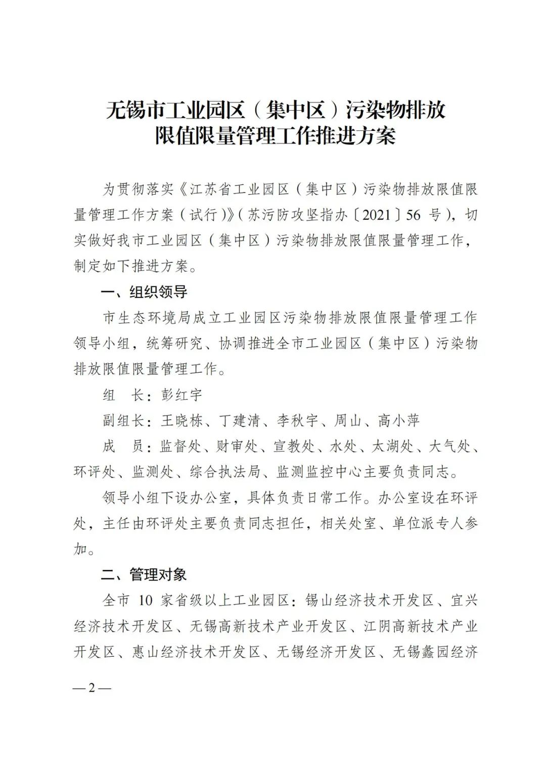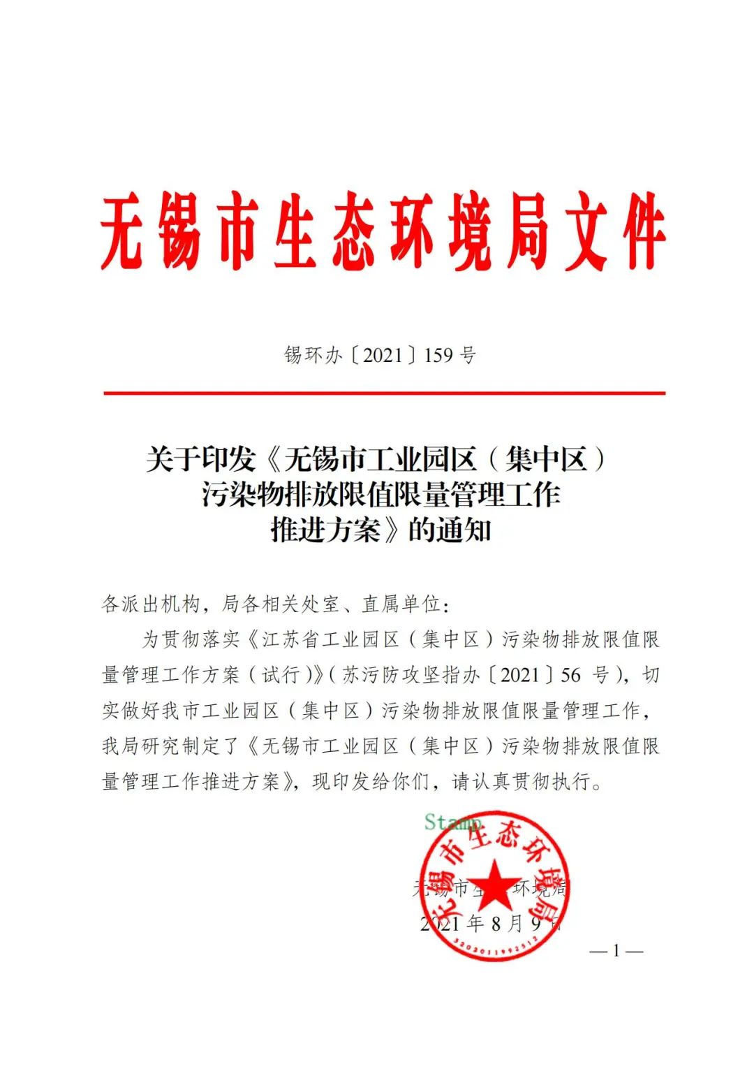 《無錫市工業(yè)園區(qū)(集中區(qū))污染物排放限值限量管理工作推進(jìn)方案》(錫環(huán)辦〔2021〕159號(hào))