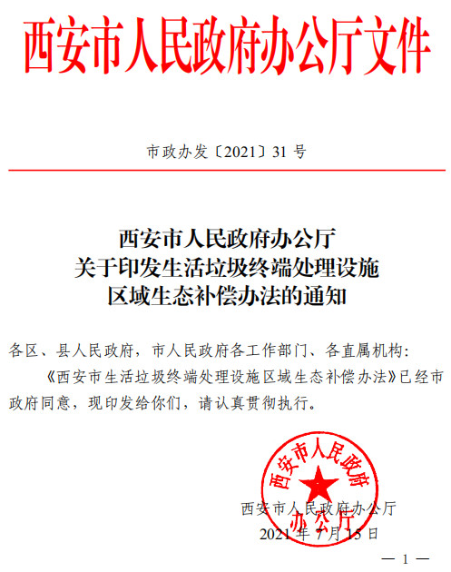 《西安市生活垃圾終端處理設(shè)施區(qū)域生態(tài)補償辦法》(市政辦發(fā)【2021】31號)
