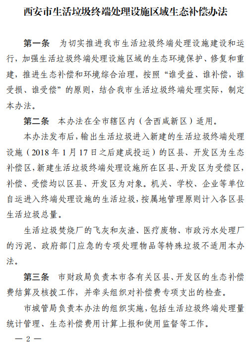 西安市生活垃圾終端處理設(shè)施區(qū)域生態(tài)補償辦法