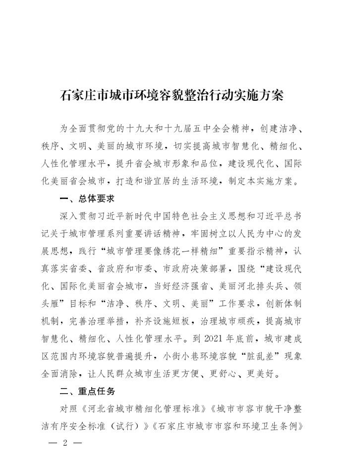 《石家莊市城市環(huán)境容貌整治行動(dòng)實(shí)施方案》(石政協(xié)函【2021】31號(hào))