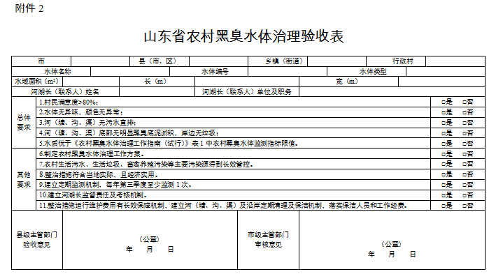 2.山東省農(nóng)村黑臭水體治理驗(yàn)收表