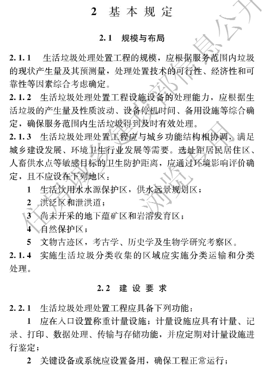 《生活垃圾處理處置工程項(xiàng)目規(guī)范》(2022年1月1日起實(shí)施)