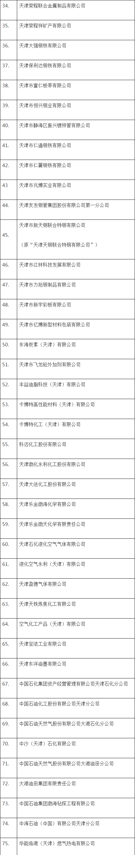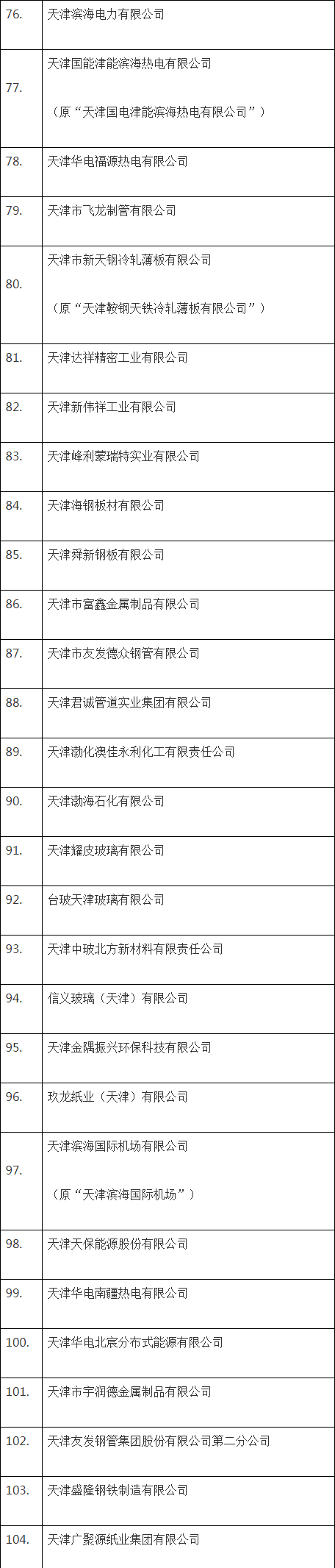 天津市碳排放權(quán)交易試點(diǎn)納入企業(yè)2020年度履約名單