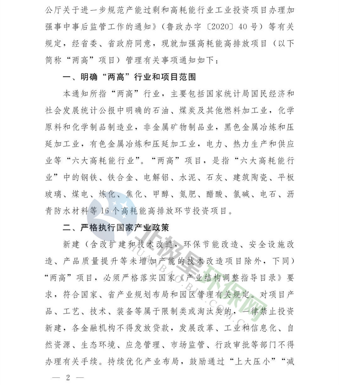 《山東省關于加強兩高項目管理的通知》(魯政辦字【2021】57號)