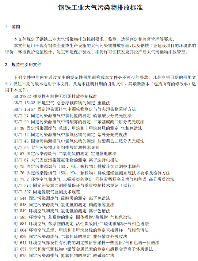 鋼鐵工業(yè)大氣污染物排放標(biāo)準(zhǔn)(征求意見稿)