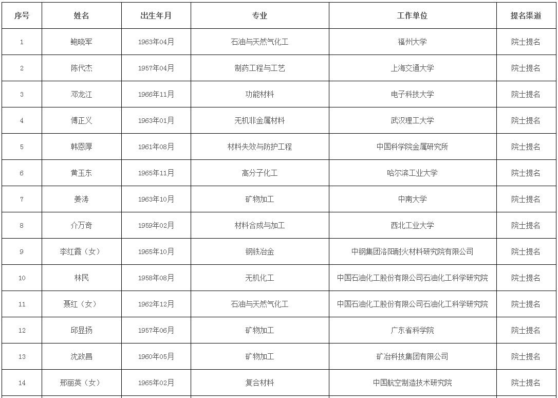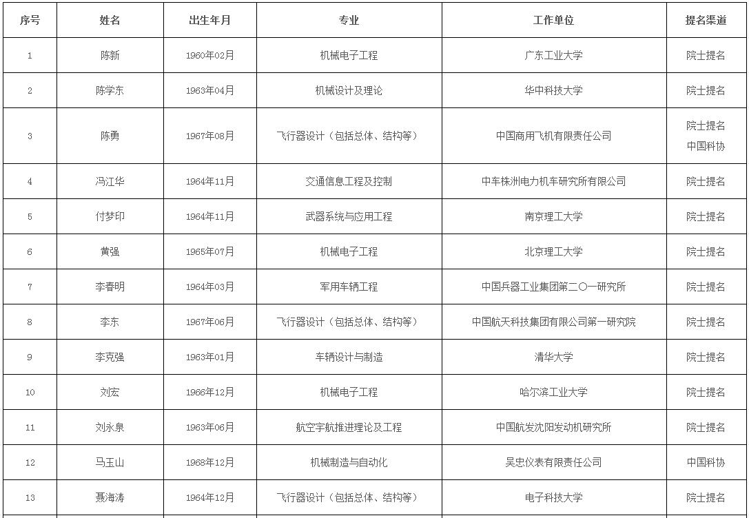 《中國(guó)工程院2021年院士增選進(jìn)入第二輪評(píng)審候選人名單》