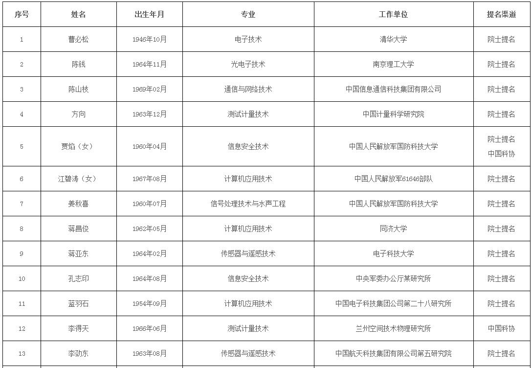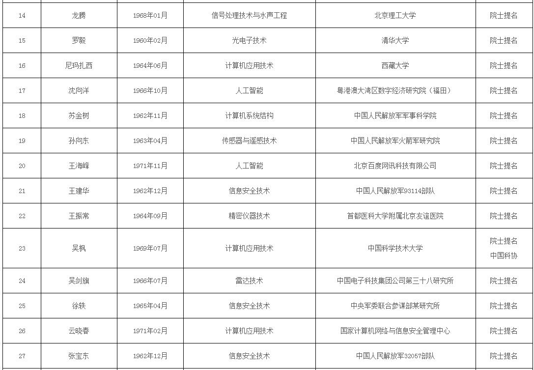 中國(guó)工程院2021年院士增選進(jìn)入第二輪評(píng)審候選人名單