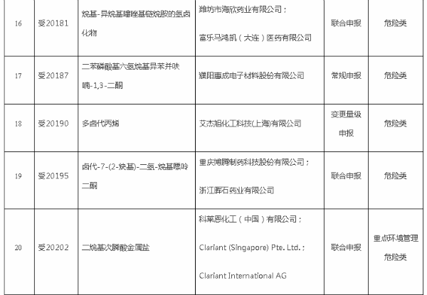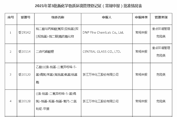 《關(guān)于2021年第3批新化學(xué)物質(zhì)環(huán)境管理登記證(常規(guī)申報(bào))審批結(jié)果的公開(kāi)》