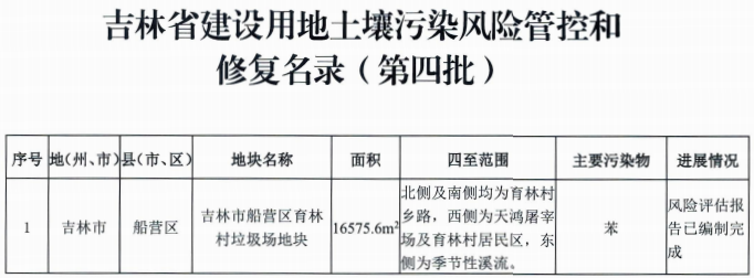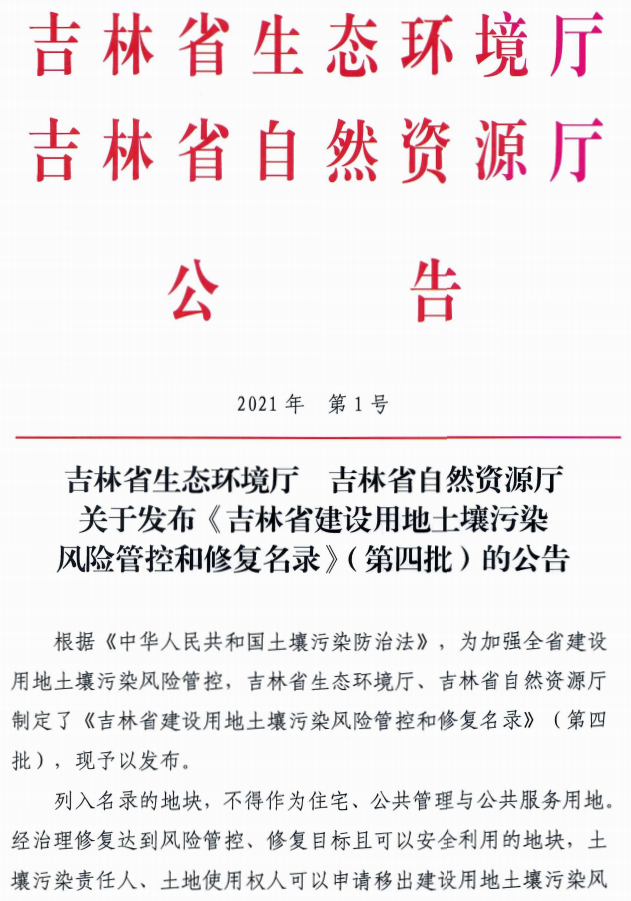 《吉林省建設(shè)用地土壤污染風(fēng)險(xiǎn)管控和修復(fù)名錄(第四批)》