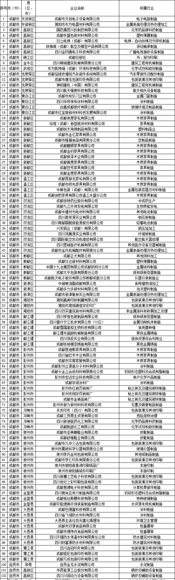 四川省生態(tài)環(huán)境廳印發(fā)《關(guān)于公布2021年度強(qiáng)制性清潔生產(chǎn)審核重點(diǎn)企業(yè)名單的通知》,共179家企業(yè)入選,詳情如下: