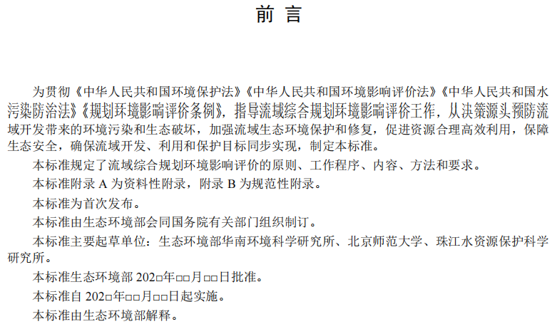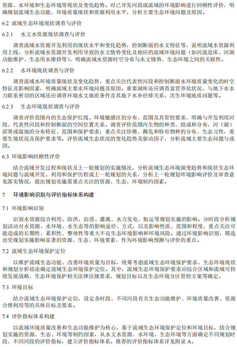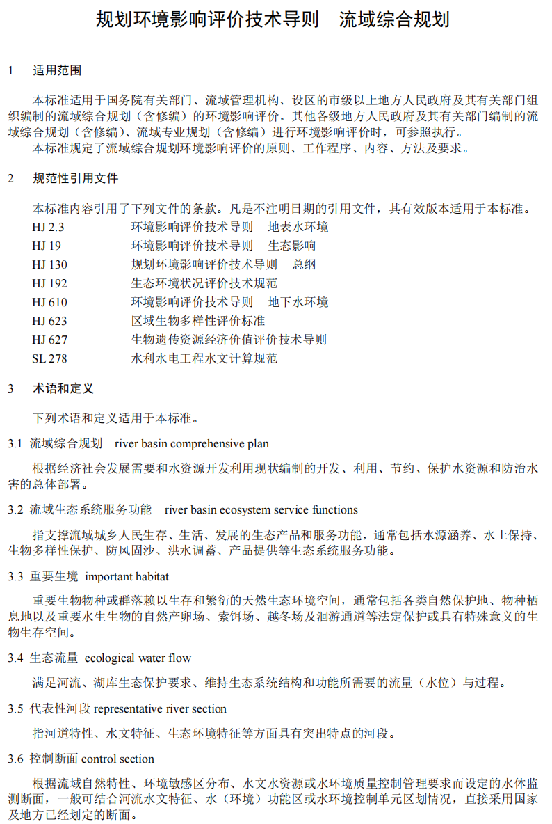 生態(tài)環(huán)境部辦公廳《規(guī)劃環(huán)境影響評價技術(shù)導(dǎo)則 流域綜合規(guī)劃(征求意見稿)》
