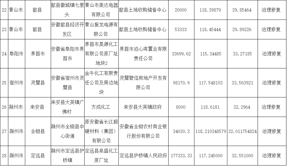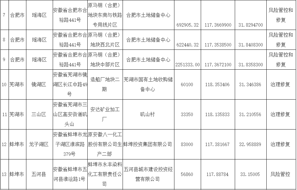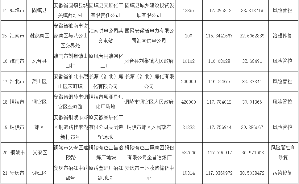 安徽省建設(shè)用地土壤污染風(fēng)險(xiǎn)管控和修復(fù)名錄(2021年5月)