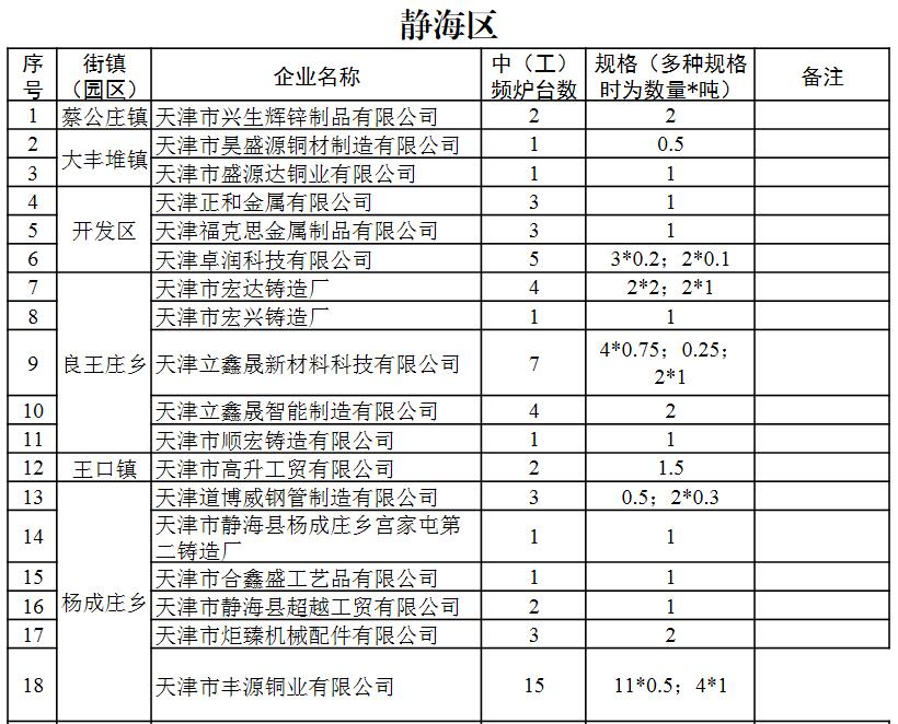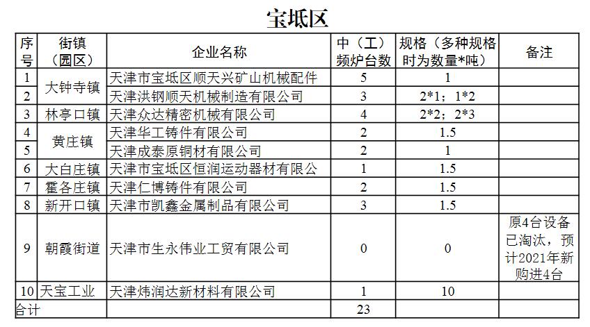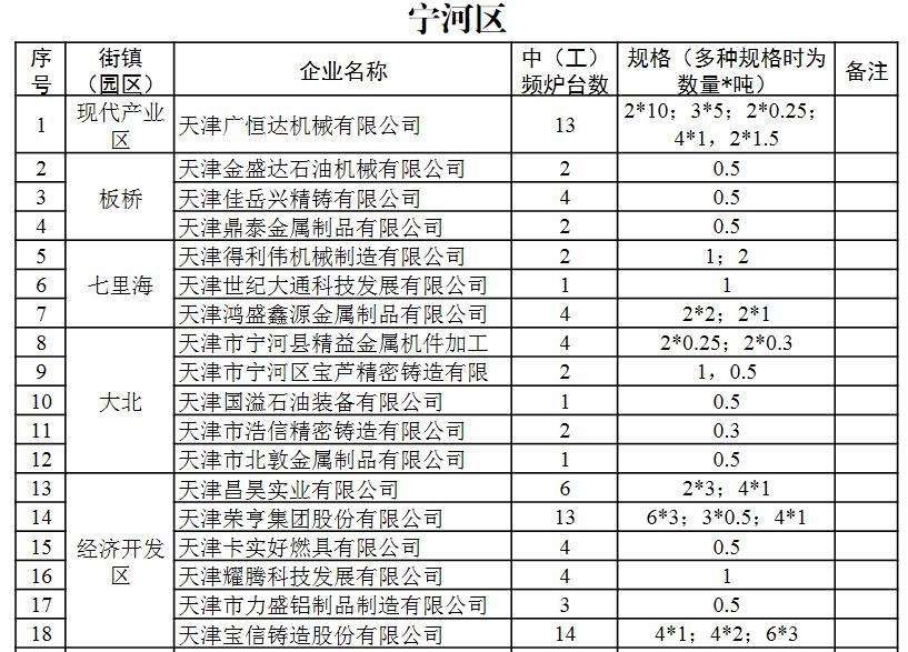 日前,天津公布天津市2020年中(工)頻爐清單。共涉及企業(yè)168家。詳情如下: