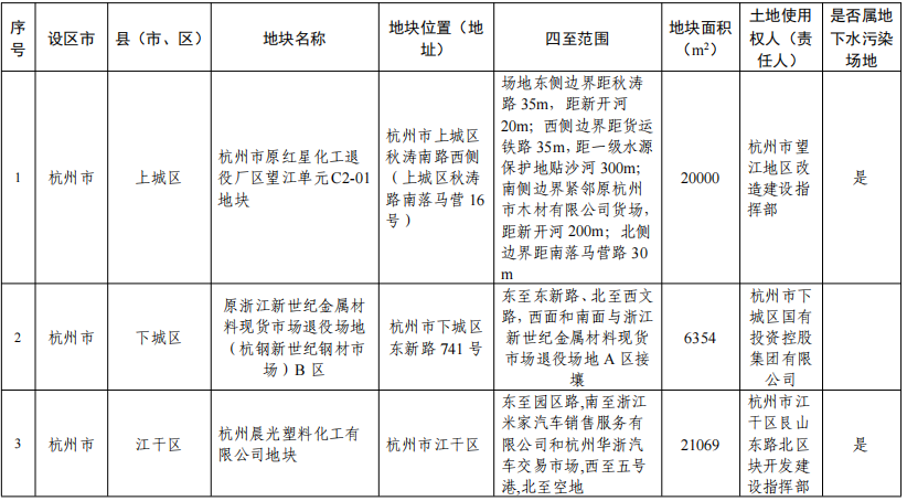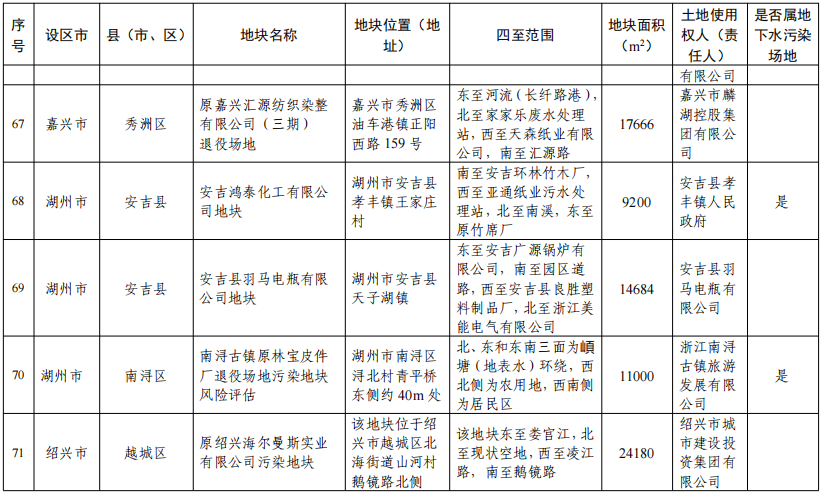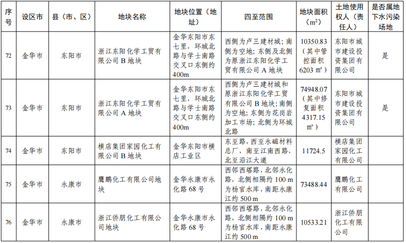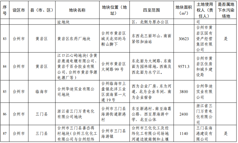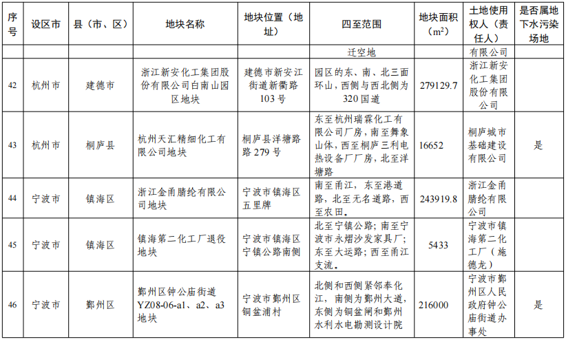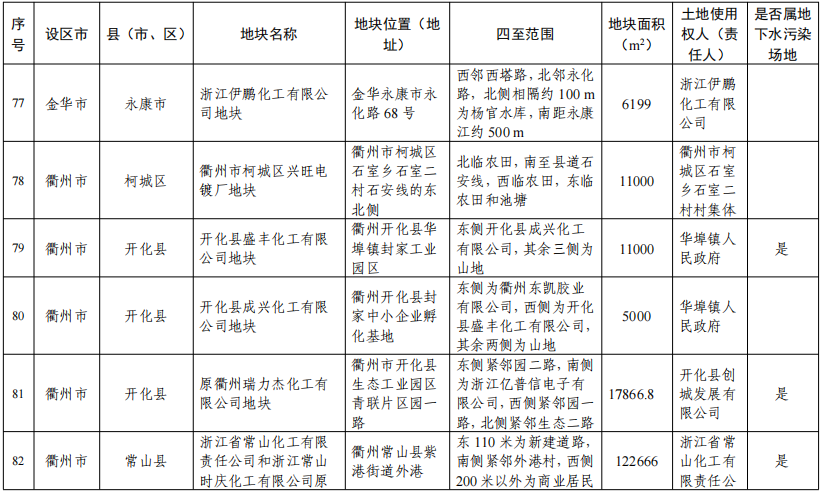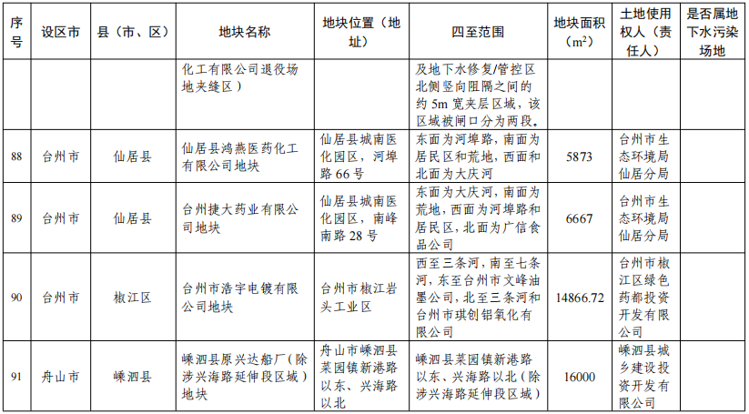 獲悉,4月26日,浙江省更新發(fā)布了建設(shè)用地土壤污染風險管控和修復名錄(含地下水污染場地),共91地塊,詳情如下: