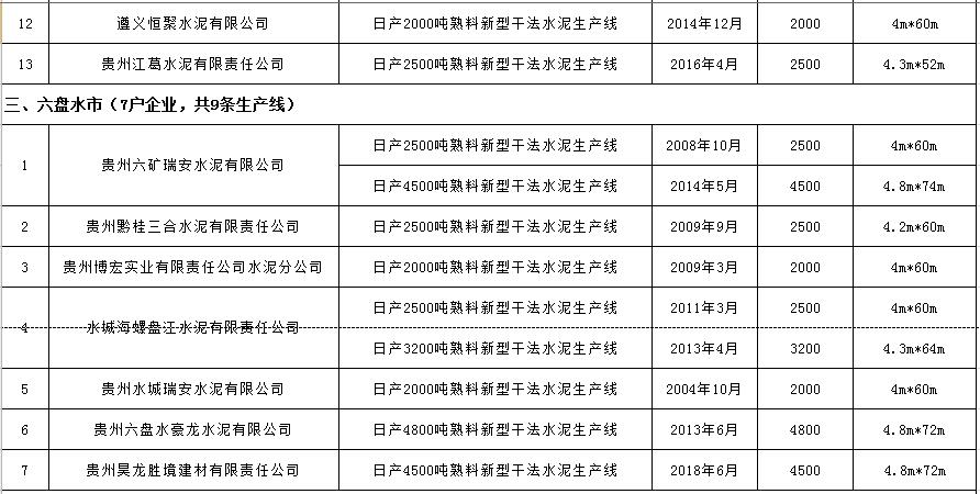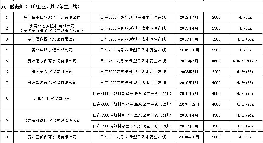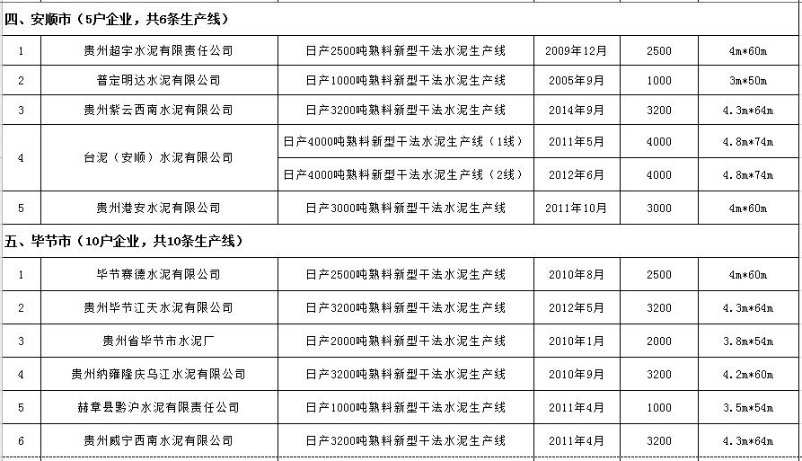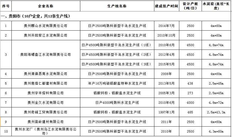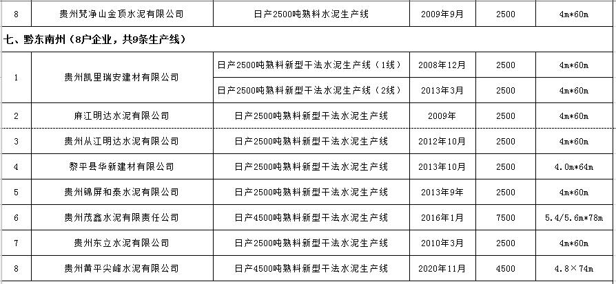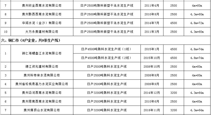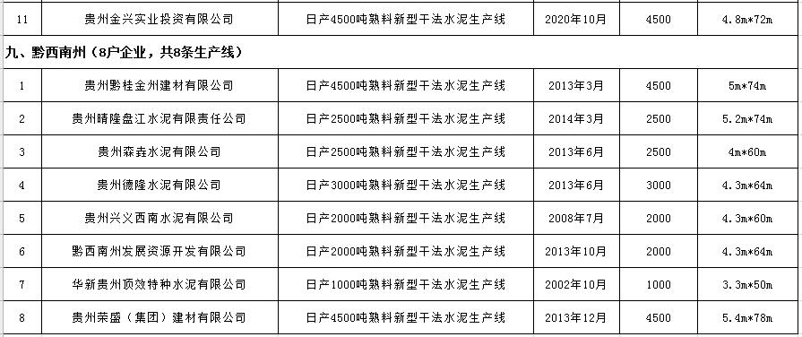 《貴州省2020年度水泥熟料和平板玻璃生產(chǎn)線清單》