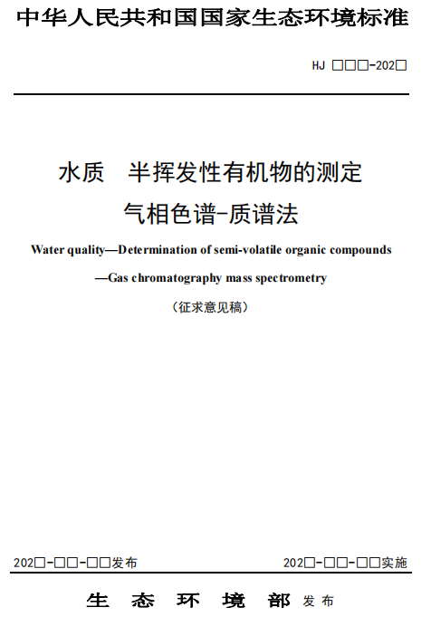 關(guān)于征求國(guó)家生態(tài)環(huán)境標(biāo)準(zhǔn)《水質(zhì) 半揮發(fā)性有機(jī)物的測(cè)定 氣相色譜-質(zhì)譜法(征求意見稿)》意見的通知《生態(tài)環(huán)境部:水質(zhì)半揮發(fā)性有機(jī)物的測(cè)定氣相色譜-質(zhì)譜法(征求意見稿)》