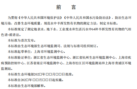 生態(tài)環(huán)境部辦公廳《生態(tài)環(huán)境部:水質(zhì)半揮發(fā)性有機(jī)物的測(cè)定氣相色譜-質(zhì)譜法(征求意見稿)》