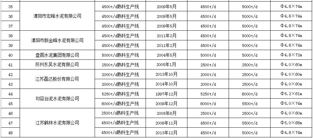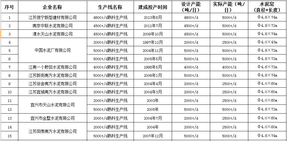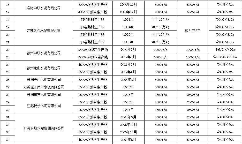 江蘇省水泥熟料生產(chǎn)線清單《江蘇省水泥熟料和平板玻璃生產(chǎn)線清單》