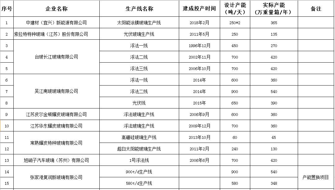 《江蘇省水泥熟料和平板玻璃生產(chǎn)線清單》