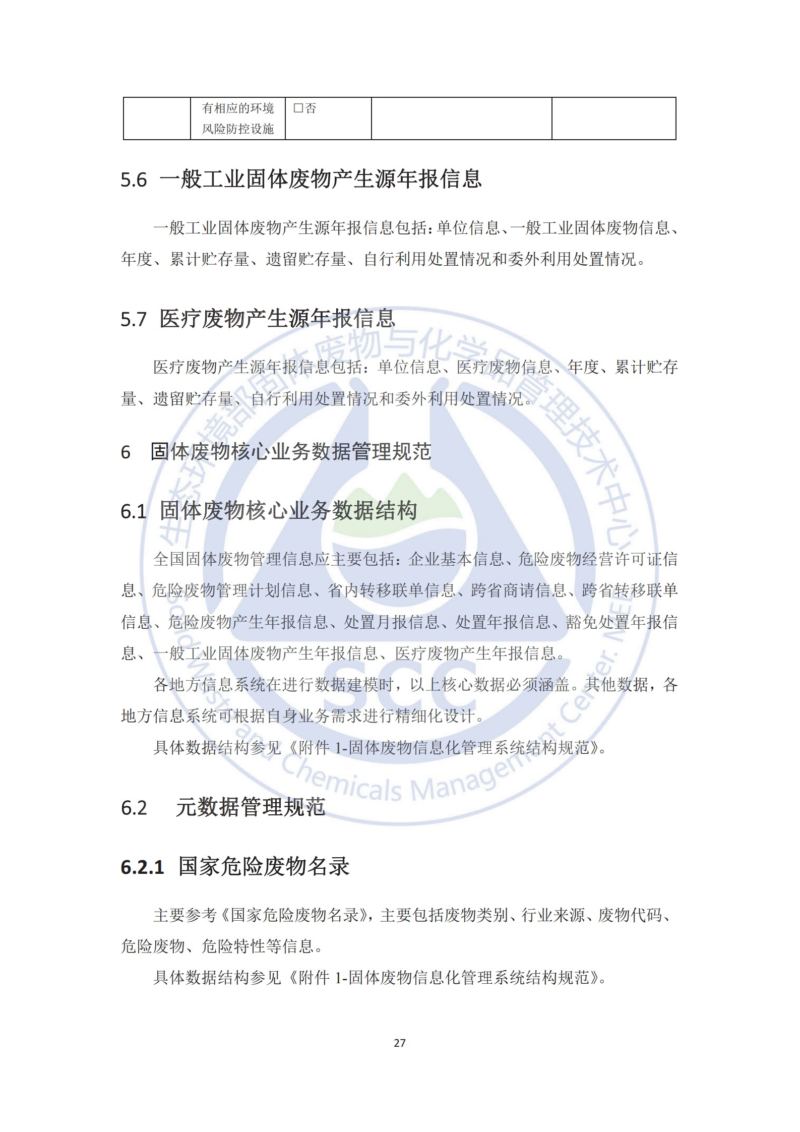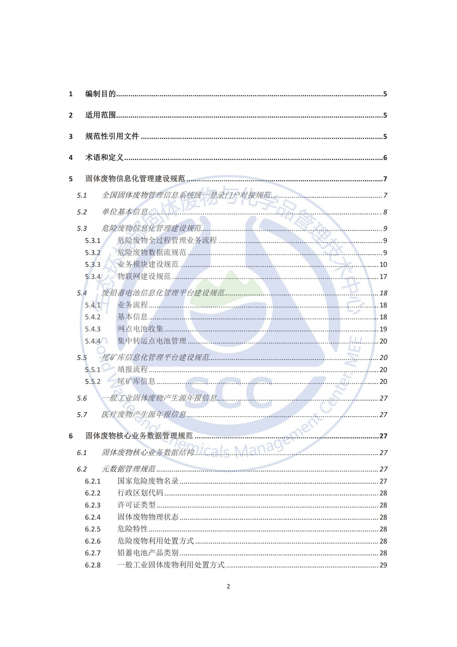 為貫徹落實《固體廢物污染環(huán)境防治法》,推進(jìn)固體廢物收集、貯存、運(yùn)輸、利用、處置等全過程監(jiān)控和信息化追溯,促進(jìn)固體廢物環(huán)境管理信息互聯(lián)互通和共建共享,我中心組織編制了《固體廢物信息化管理通則》,供各地在開展固體廢物環(huán)境信息化管理系統(tǒng)建設(shè)和應(yīng)用過程中參考。通則內(nèi)容可在生態(tài)環(huán)境部固體廢物與化學(xué)品管理技術(shù)中心網(wǎng)站查詢。