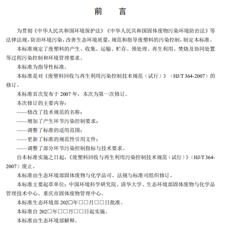 2.廢塑料污染控制技術(shù)規(guī)范(征求意見(jiàn)稿)《環(huán)境部關(guān)于征求<廢塑料污染控制技術(shù)規(guī)范(征求意見(jiàn)稿)>等兩項(xiàng)國(guó)家生態(tài)環(huán)境標(biāo)準(zhǔn)意見(jiàn)的函》
