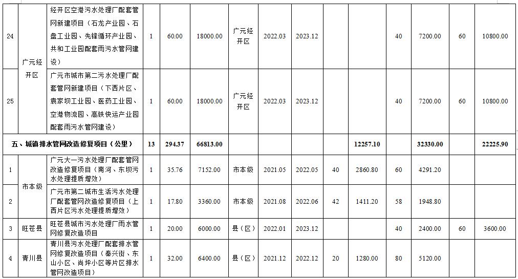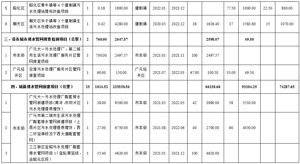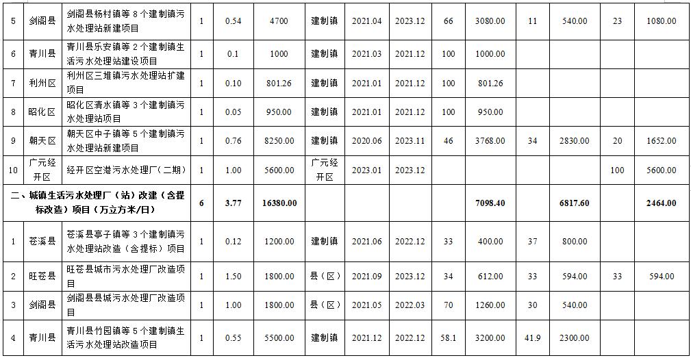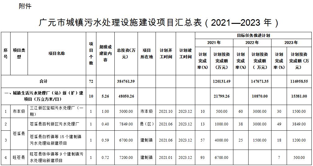 附件:廣元市城鎮(zhèn)污水處理設(shè)施建設(shè)項(xiàng)目匯總表(2021—2023年)《四川省廣元市城鎮(zhèn)生活污水處理設(shè)施建設(shè)三年推進(jìn)方案(2021——2023年)》