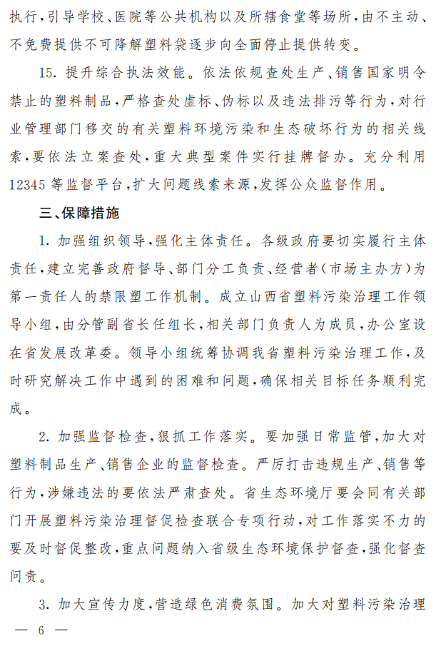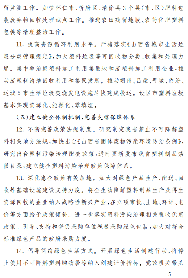 《山西省加快推進(jìn)塑料污染治理行動(dòng)方案》