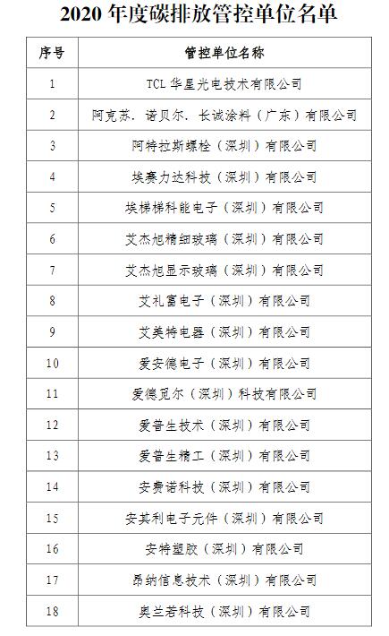 《2020年度深圳碳排放管控單位名單》