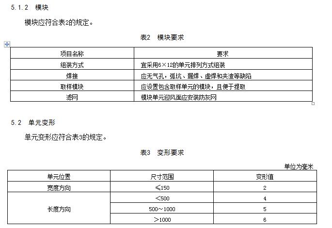 產(chǎn)品單元外觀應(yīng)符合表1的規(guī)定。《水泥工業(yè)用蜂窩式低溫?zé)煔饷撓醮呋瘎穮f(xié)會(huì)標(biāo)準(zhǔn)(征求意見稿)