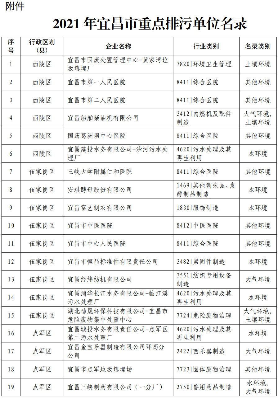 附件:2021年宜昌市重點(diǎn)排污單位名錄