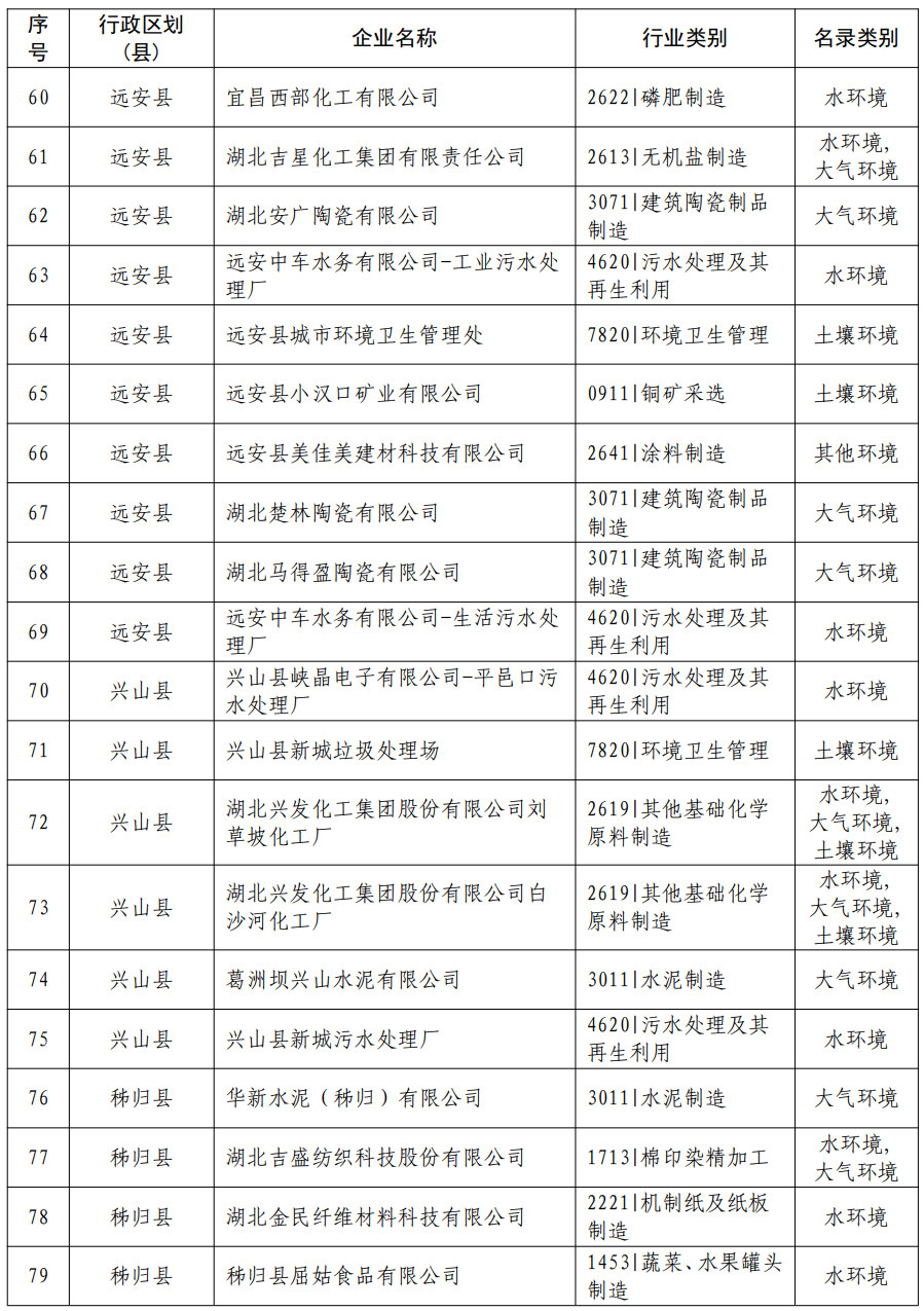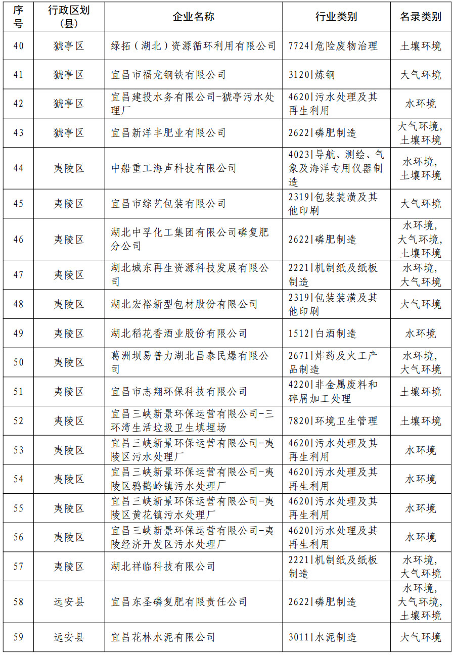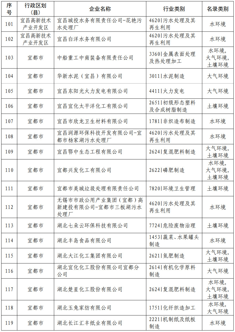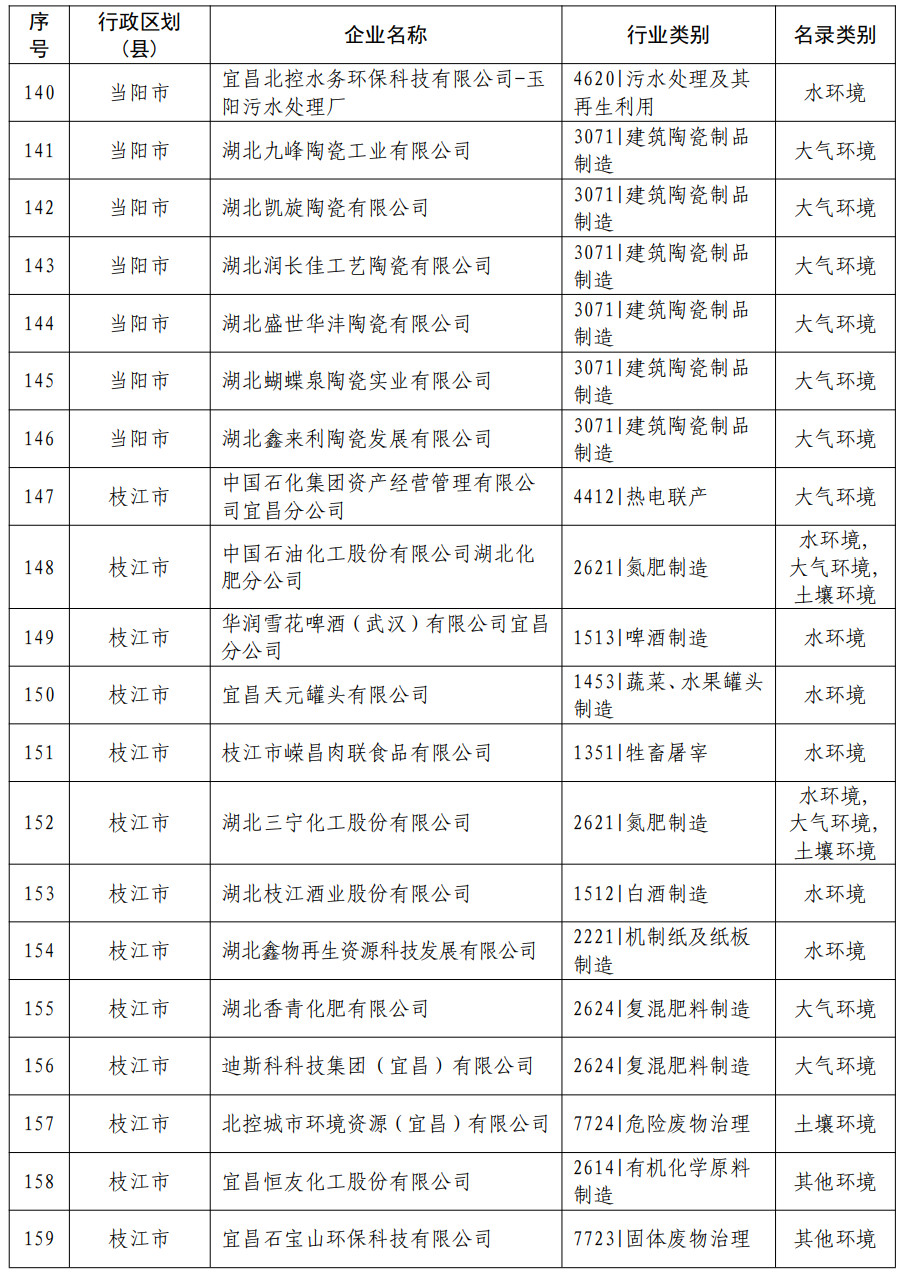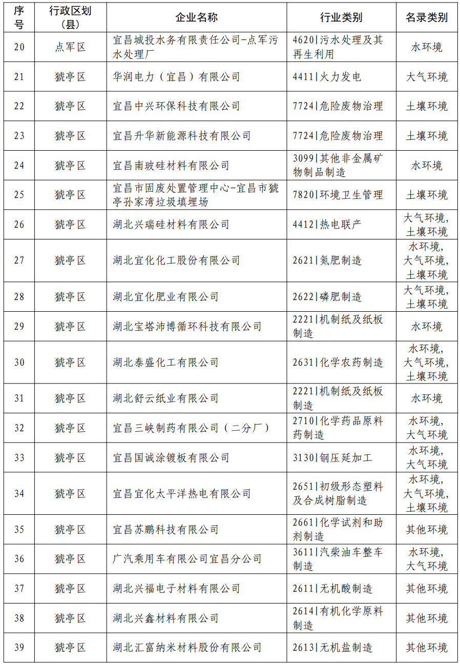 《2021年湖北省宜昌市重點(diǎn)排污單位名錄》(宜市環(huán)發(fā)[2021]1號(hào))