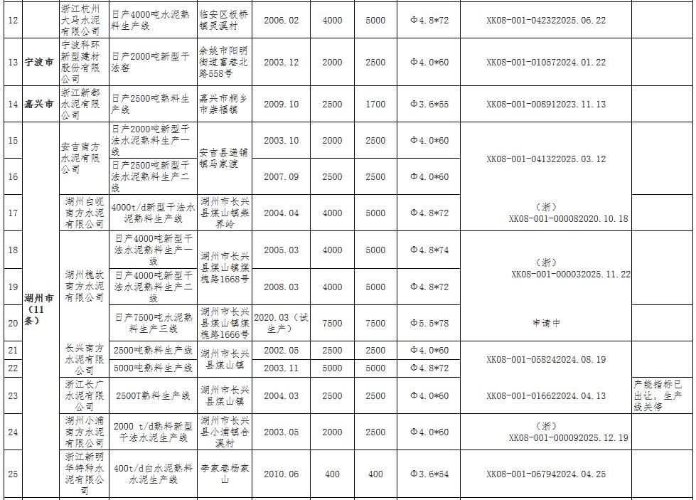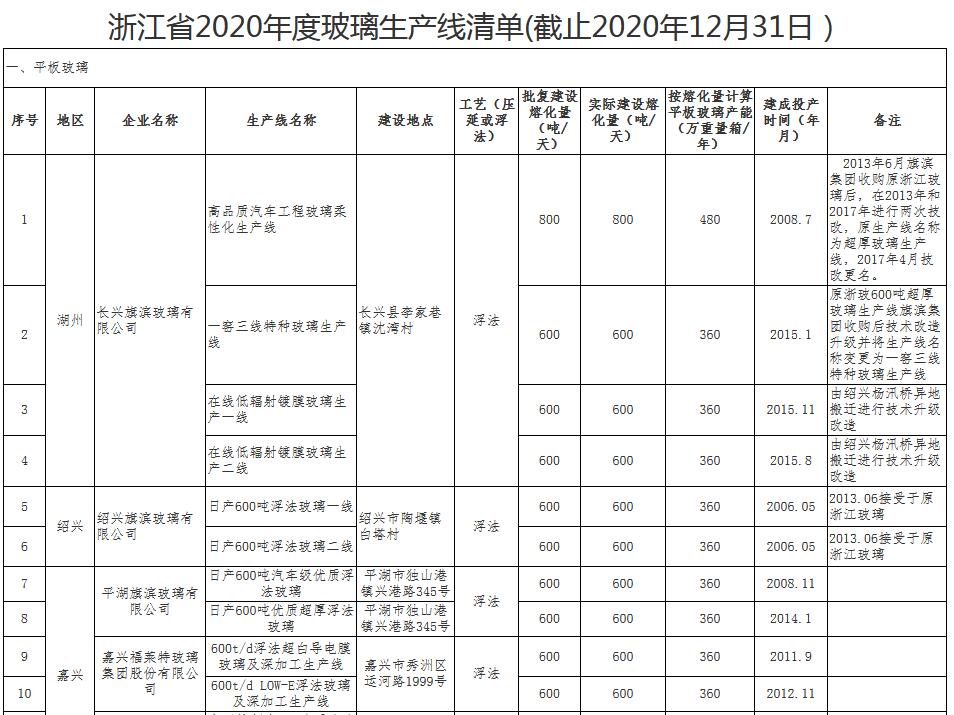 《2020年度浙江省水泥熟料平板玻璃生產(chǎn)清單》