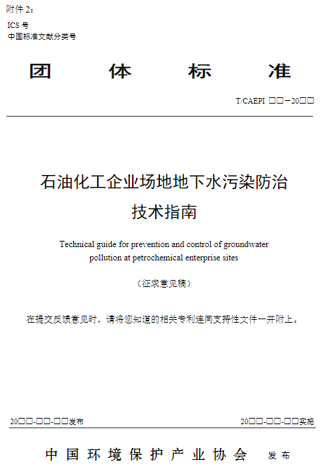 《關(guān)于征求中國環(huán)境保護(hù)產(chǎn)業(yè)協(xié)會(huì)標(biāo)準(zhǔn)<石油化工企業(yè)場地地下水污染防治技術(shù)指南>意見的函》