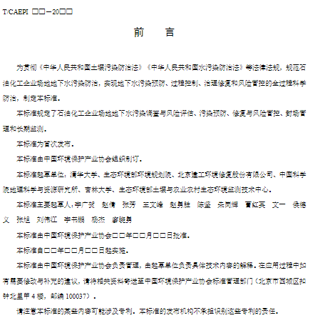 《石油化工企業(yè)場地地下水污染防治技術(shù)指南(征求意見稿)》《關(guān)于征求中國環(huán)境保護(hù)產(chǎn)業(yè)協(xié)會(huì)標(biāo)準(zhǔn)<石油化工企業(yè)場地地下水污染防治技術(shù)指南>意見的函》