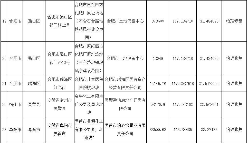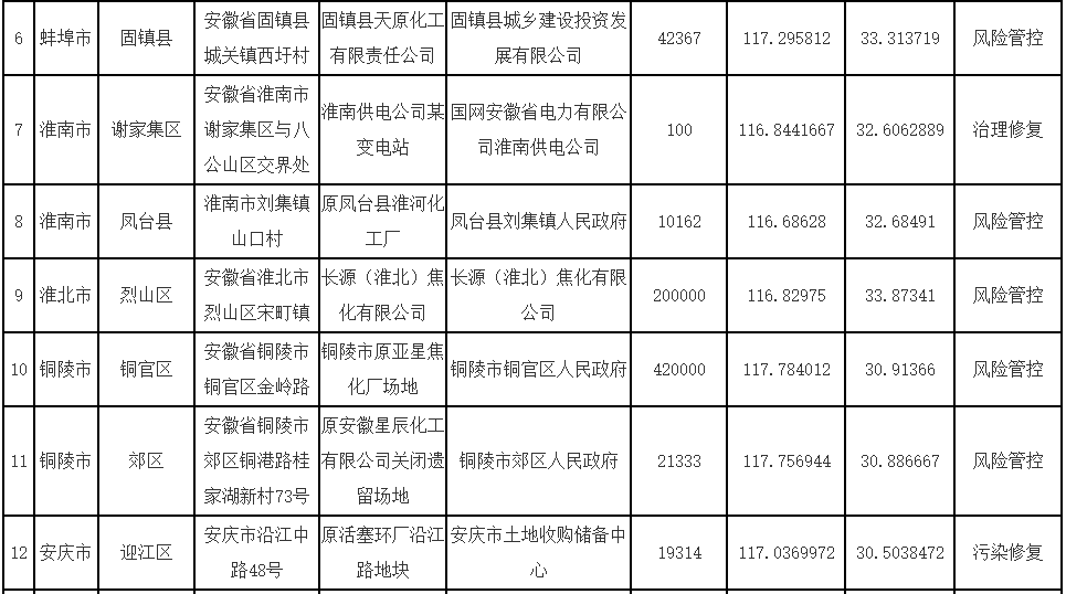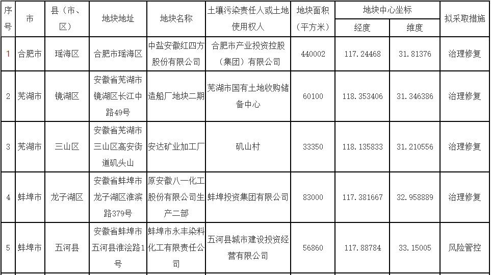 安徽省生態(tài)環(huán)境廳、安徽省自然資源廳關于更新《安徽省建設用地土壤污染風險管控和修復名錄》的公告