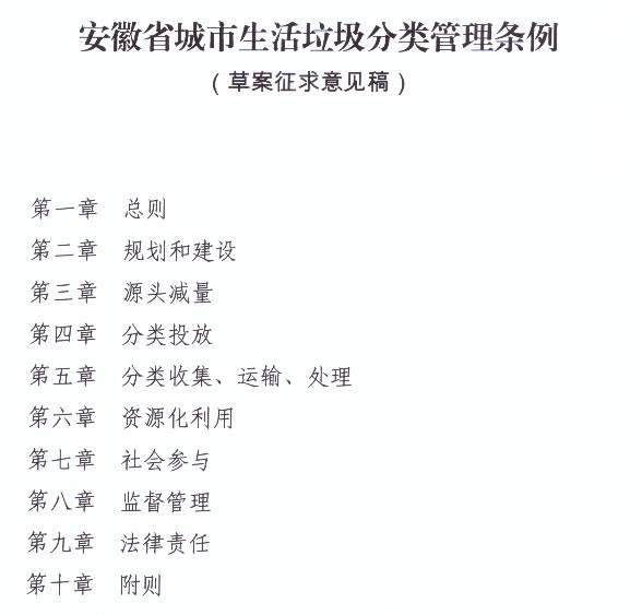 《安徽省城市生活垃圾分類管理條例(草案征求意見稿)》