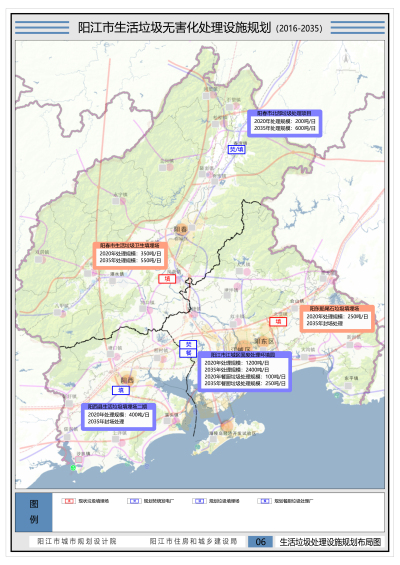 《陽(yáng)江市生活垃圾無(wú)害化處理設(shè)施規(guī)劃(2016-2035)》已完成規(guī)劃編制、審查及批前公示等相關(guān)程序,并經(jīng)市政府批準(zhǔn)實(shí)施。
