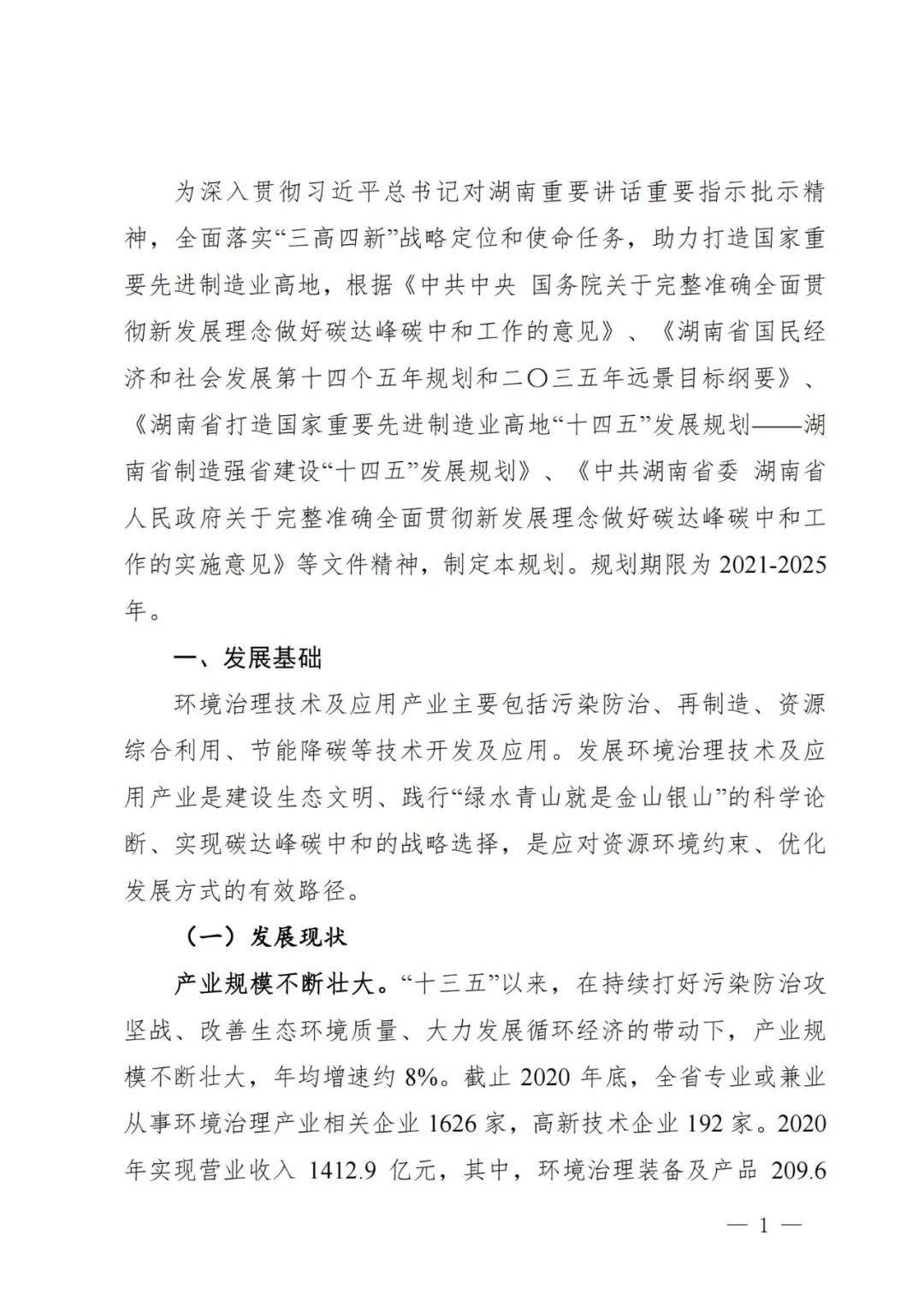 《湖南省環(huán)境治理技術(shù)及應(yīng)用產(chǎn)業(yè) “十四五”發(fā)展規(guī)劃》