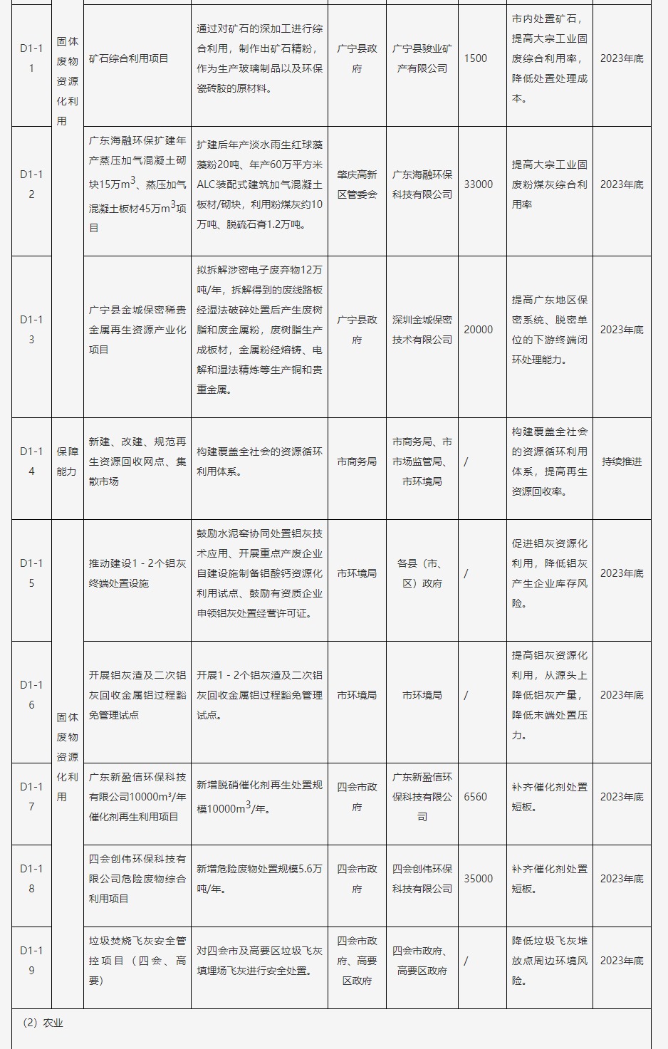 到2023年底,在推行綠色工業(yè)、綠色生活、綠色農(nóng)業(yè)、培育固體廢物處置產(chǎn)業(yè)、推行固體廢物多元共治等方面取得明顯成效,各類固體廢物減量化與資源化利用水平全面提升,危險(xiǎn)廢物全面安全管控。完成“無廢城市”建設(shè)25項(xiàng)制度體系、11項(xiàng)技術(shù)體系、6項(xiàng)監(jiān)管體系、10項(xiàng)市場體系及42項(xiàng)重點(diǎn)工程項(xiàng)目建設(shè)任務(wù),總結(jié)形成肇慶市“無廢城市”建設(shè)模式。