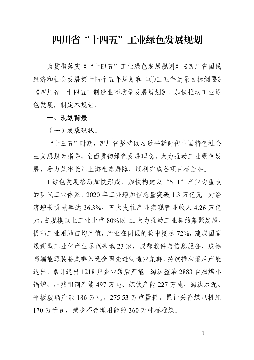 《四川省“十四五”工業(yè)綠色發(fā)展規(guī)劃》