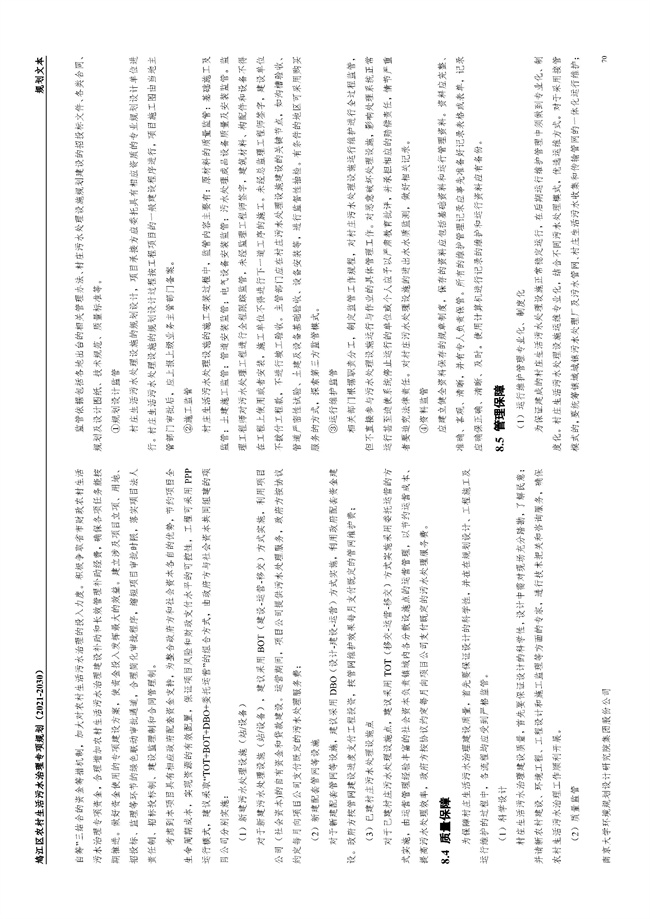 日前,安徽省蕪湖市鳩江區(qū)農(nóng)村生活污水治理專項(xiàng)規(guī)劃(2021-2030)發(fā)布,該規(guī)劃指出,近期 2021-2025 年目標(biāo):完成規(guī)劃布局的 21 個(gè)中心村、飲用水水源保護(hù)地、重點(diǎn)流域周邊、 鄉(xiāng)村旅游景區(qū)的村莊生活污水治理,中心村生活污水治理覆蓋率達(dá)到 100%;集中收集處理出水水 質(zhì)按《安徽省農(nóng)村污水處理設(shè)施污染物排放標(biāo)準(zhǔn)》(DB34/3527-2019)相應(yīng)水質(zhì)標(biāo)準(zhǔn)執(zhí)行;分散式污水處理資源化利用率達(dá) 85%以上;建立“五位一體”的縣域農(nóng)村生活污水治理設(shè)施運(yùn)維管理體系, 規(guī)模≧50t/d 的污水處理設(shè)施基本實(shí)現(xiàn)標(biāo)準(zhǔn)化運(yùn)維。 遠(yuǎn)期 2026-2030 年目標(biāo):農(nóng)村生活污水治理行政村覆蓋率達(dá)到100%;永久居民點(diǎn)村莊數(shù)目覆 蓋率達(dá) 90%以上;集中式污水處理設(shè)施排放達(dá)標(biāo)率達(dá) 100%;分散式污水處理資源化利用率達(dá) 90% 以上;農(nóng)村生活污水集中處理設(shè)施基本實(shí)現(xiàn)標(biāo)準(zhǔn)化運(yùn)維。詳情如下: