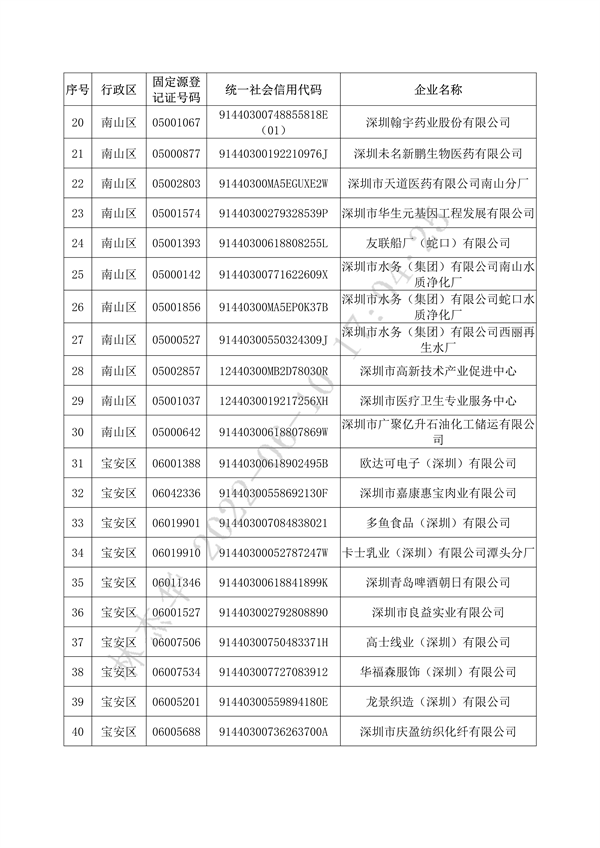 《深圳市2022年重點排污單位名錄(更新版)》