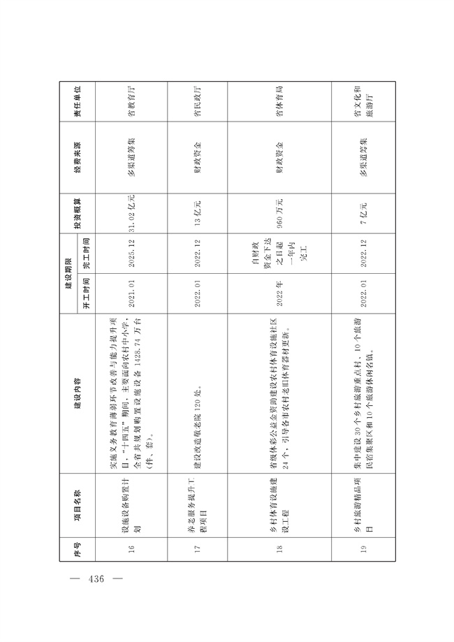 19.加強鄉(xiāng)村文體設施建設。推動尚未達到國家二級館的公共圖書館和文化館完善提升,達到國家二級館標準。提升農村全民健身場地設施數(shù)量和品質,對農村公共體育設施進行提檔升級。繼續(xù)推進鄉(xiāng)鎮(zhèn)“兩個一”(一個燈光籃球場或全民健身中心、一個多功能運動場)和農村健身設施建設。(牽頭部門:省文化和旅游廳、省體育局)