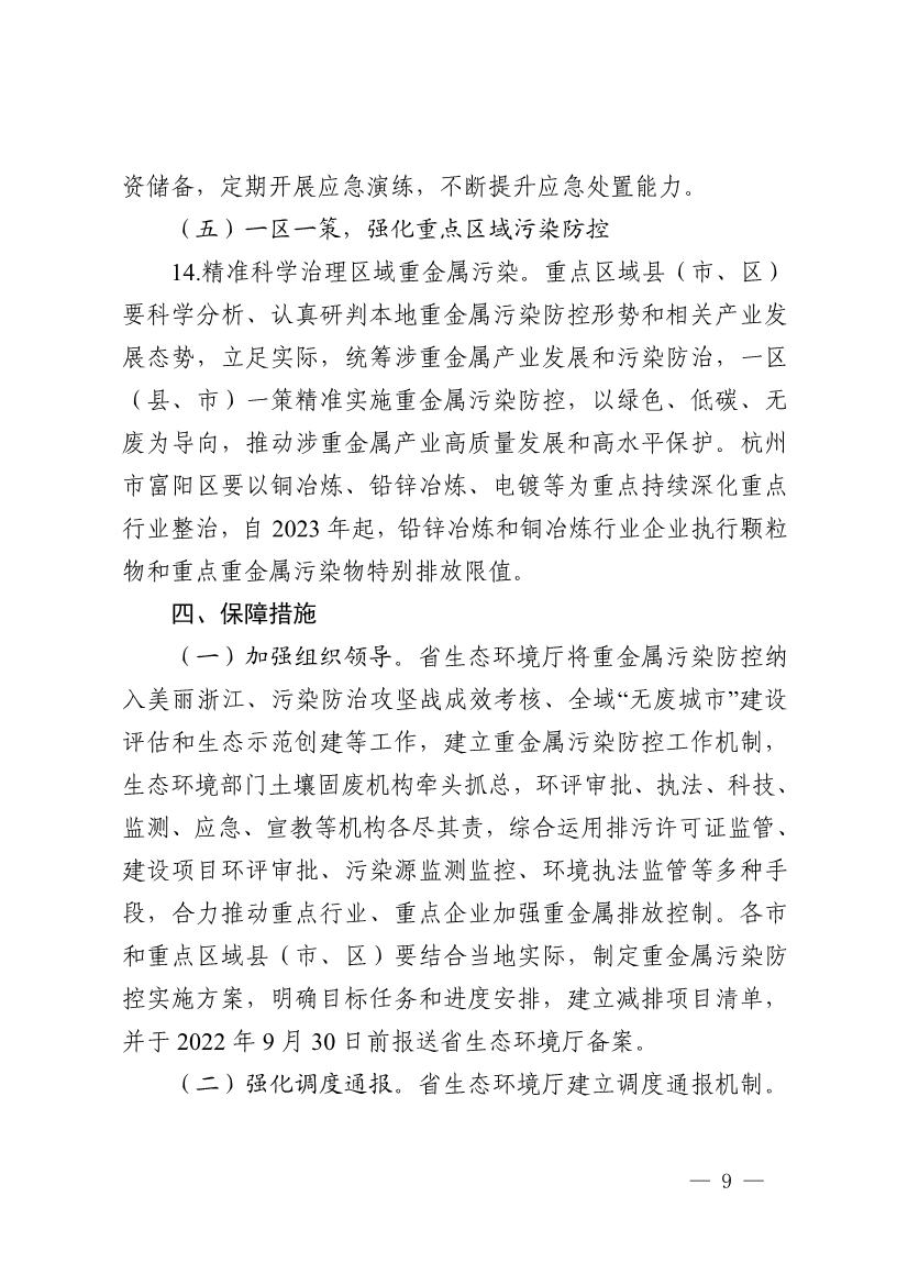 為貫徹《中共中央 國務(wù)院關(guān)于深入打好污染防治攻堅戰(zhàn)的意見》和《生態(tài)環(huán)境部關(guān)于進一步加強重金屬污染防控的意見》(環(huán)固體〔2022〕17 號,以下簡稱《國家意見》),進一步強化重金屬污染物排放控制,有效防控涉重金屬環(huán)境風(fēng)險,保障環(huán)境安全和維護群眾環(huán)境權(quán)益,浙江發(fā)布《浙江省重金屬污染防控工作方案》。詳情如下: